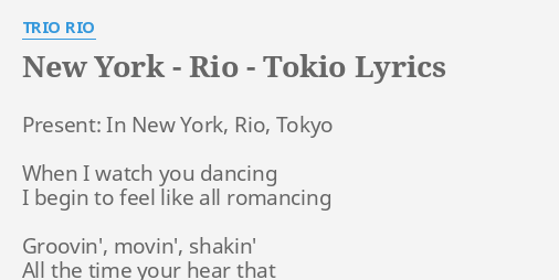 New York Rio Tokio Lyrics By Trio Rio Present In New York